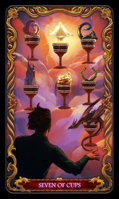 The appearance of the Seven of Cups on a Universal Day Number 7 creates profound amplification. Both energies speak to the necessity of looking beneath surface appearances to reveal true guidance. This card confirms that today's synchronicities and patterns aren't random - they're showing you which paths lead to genuine fulfillment and which are merely attractive illusions.